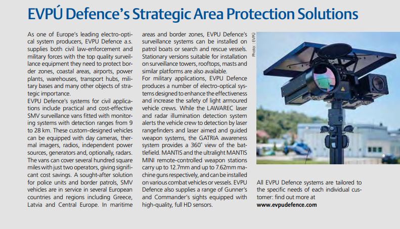 The May issue of the European Security and Defense magazine sheds some light on the systems that EVPU Defence has developed to protect land borders and other objects of strategic importance, such as airports, oil refineries, military depots etc.