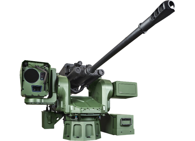 The GLADIUS MAX remote controlled weapon station is designed to detect and eliminate enemy targets, with a primary focus on unmanned aerial systems (UAS) and lightly armored ground targets. It employs an integrated radar and an electro-optical sight with a thermal imaging camera for 24/7 threat detection. Target engagement is executed by a 30 x 113 mm caliber cannon, using either proximity-fuzed or high-explosive ammunition.